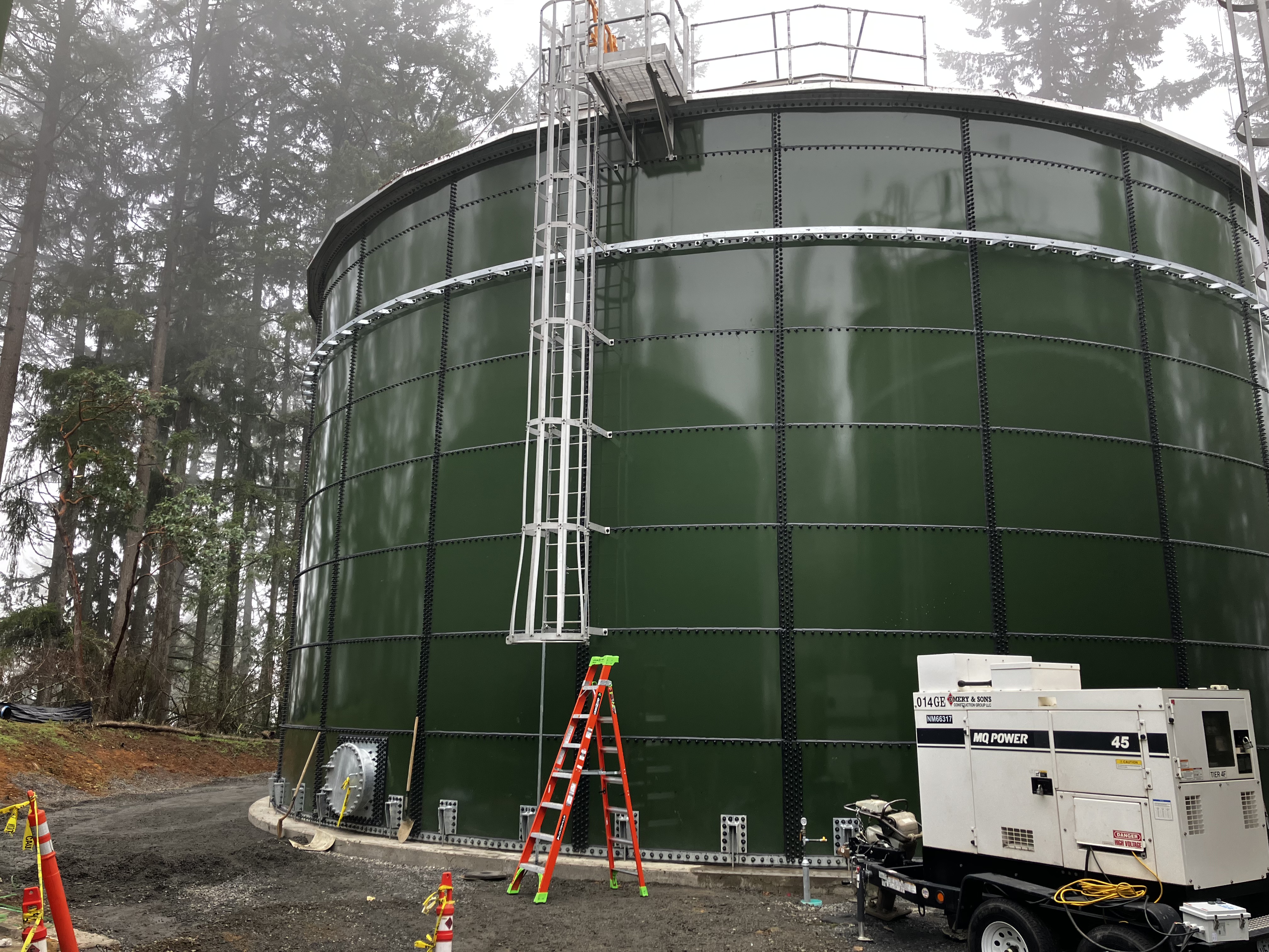 The two new bolted glass-fused-to-steel storage tanks will each be 60 feet in diameter and 40 feet tall and have a combined capacity of 1-million-gallons. The tanks will be located at ground level. The site will be restored to meet the City of Eugene’s landscaping and screening standards.