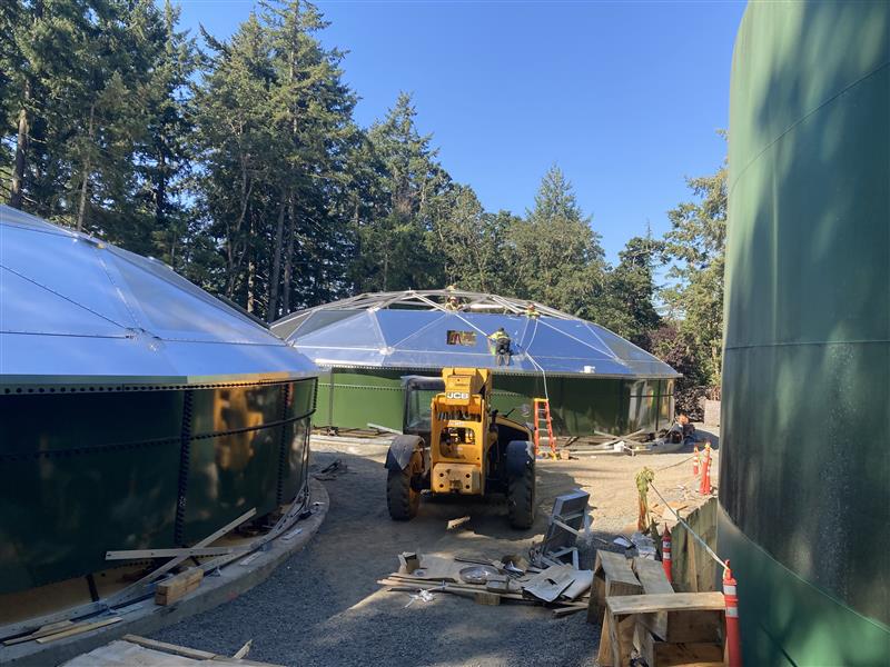 The two 500,000 gallon water storage reservoirs are now fully constructed. Over the last few months, contractor crews bolted together the pre-fabricated glass-fused-steel segment to create wall sections from the ground up.