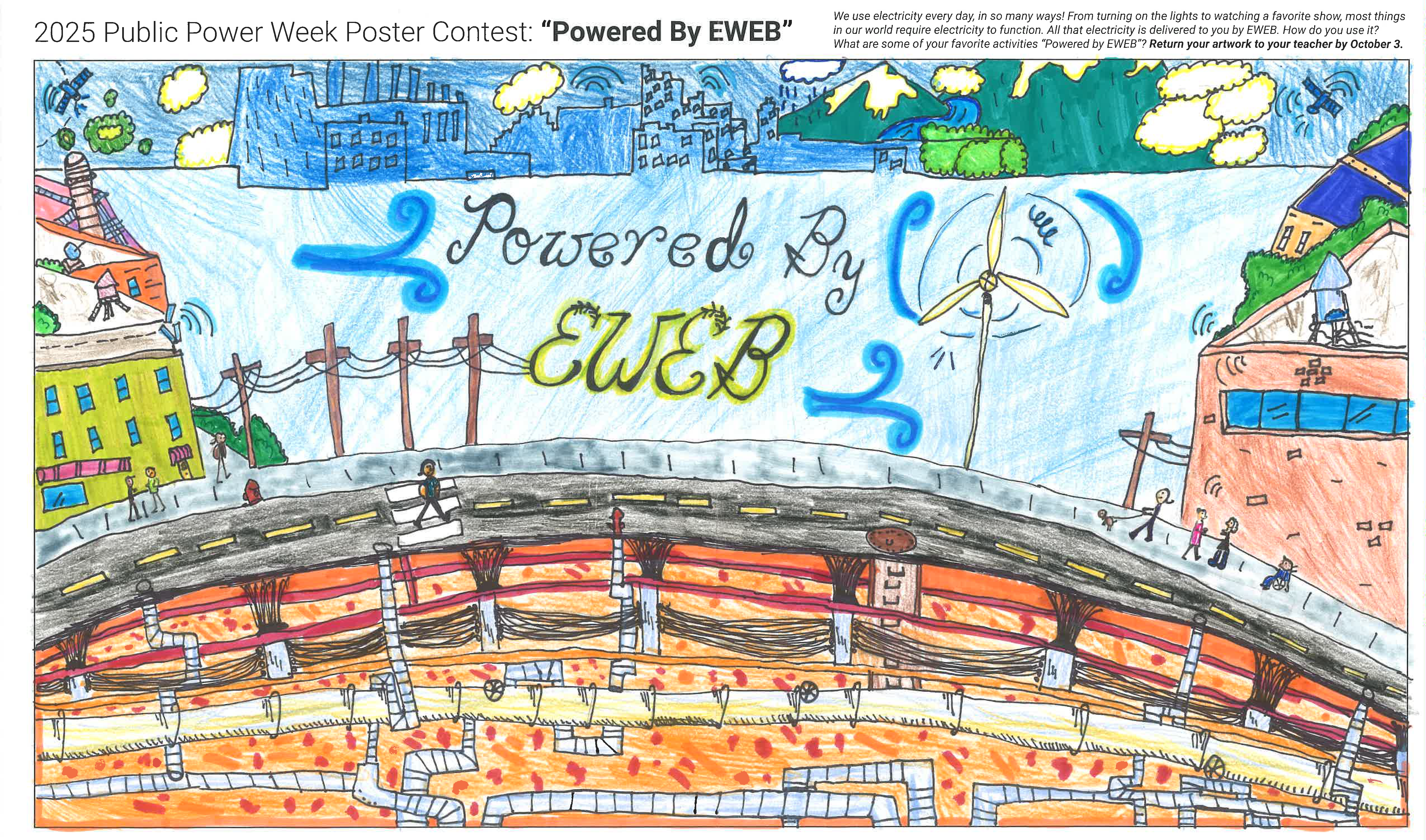 EWEB held its annual Poster Contest for fifth grade students in our service territory for Public Power Week. View the 2025 top 20 finalists.