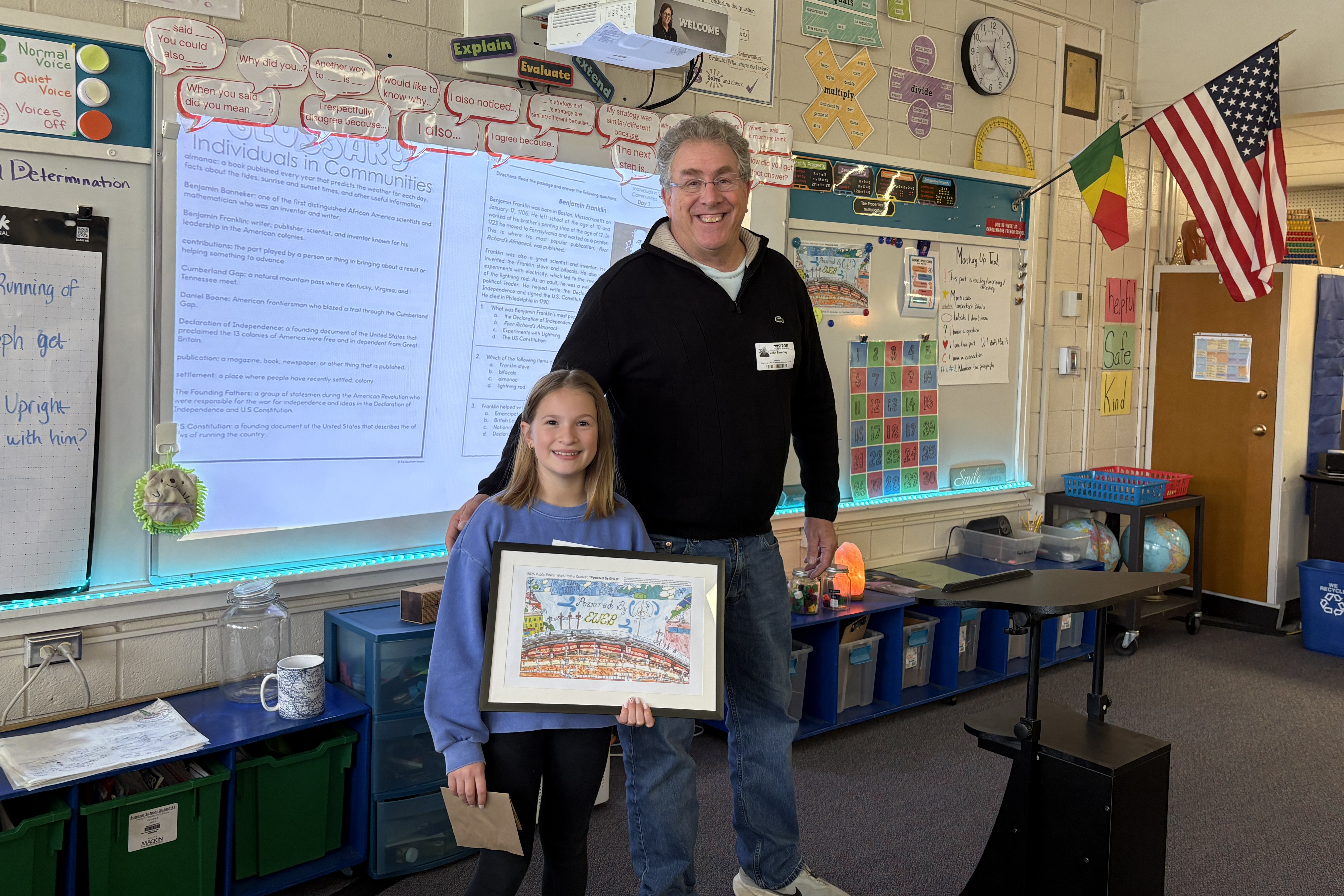 First place winner, Micah, accepting their award at Edgewood Elementary School.