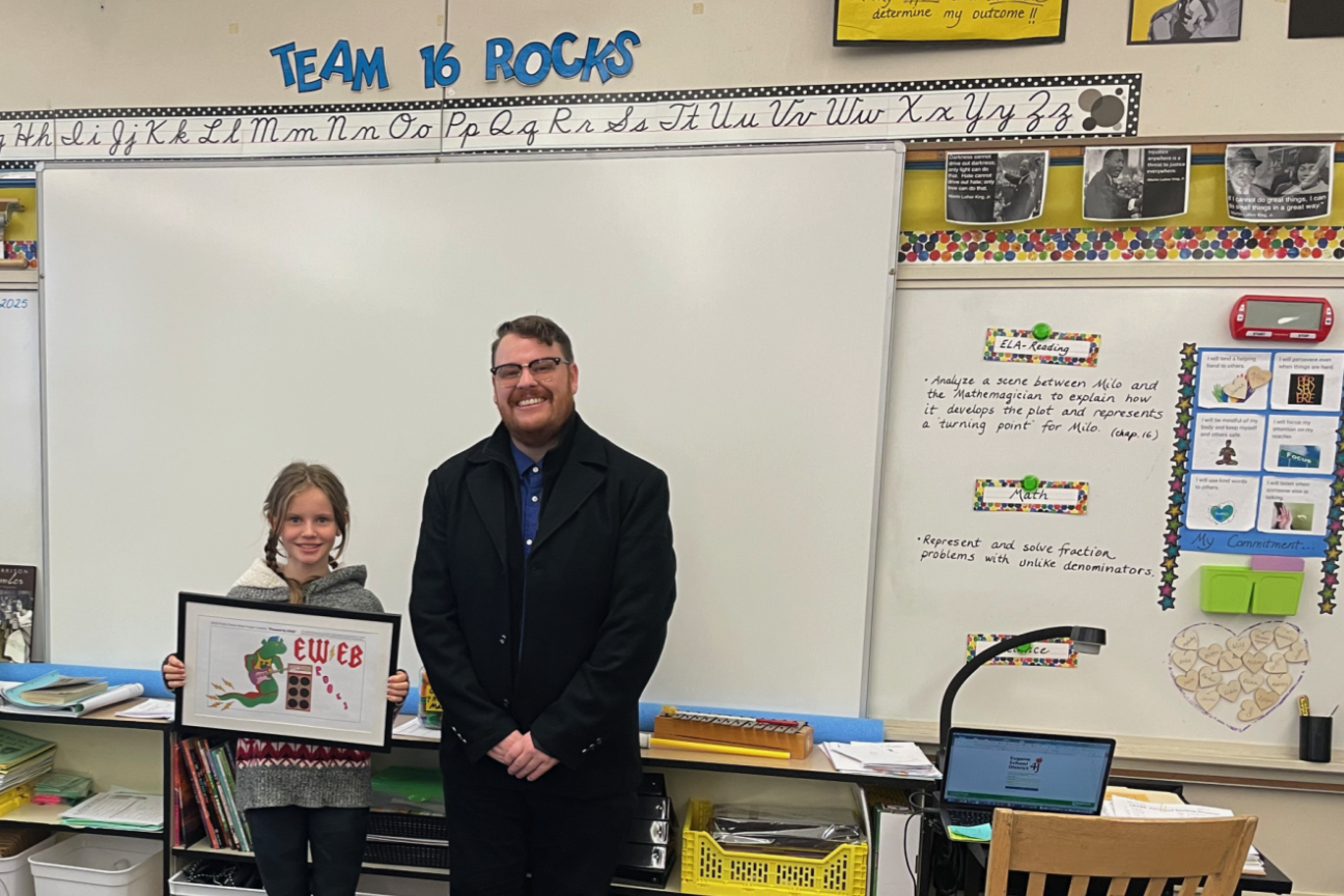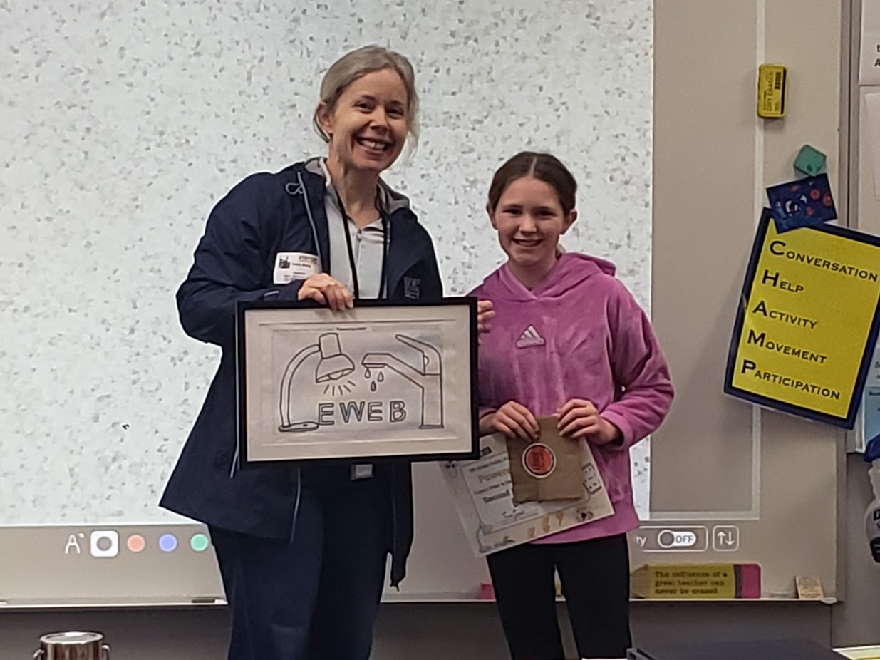 Second place winner, Bailey, with EWEB Communications Specialist Claire Wray.